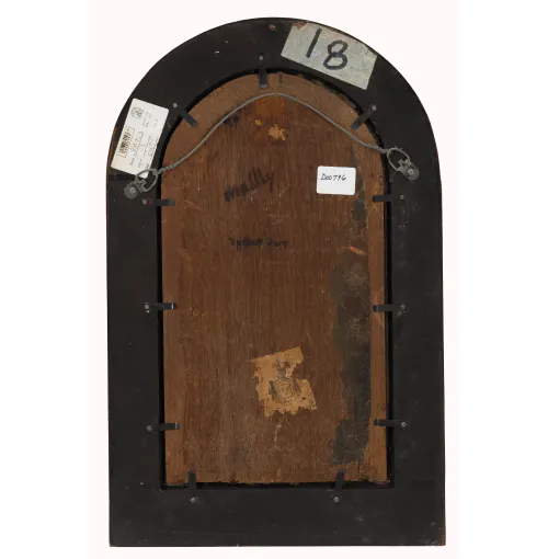 oil on panel, shaped top